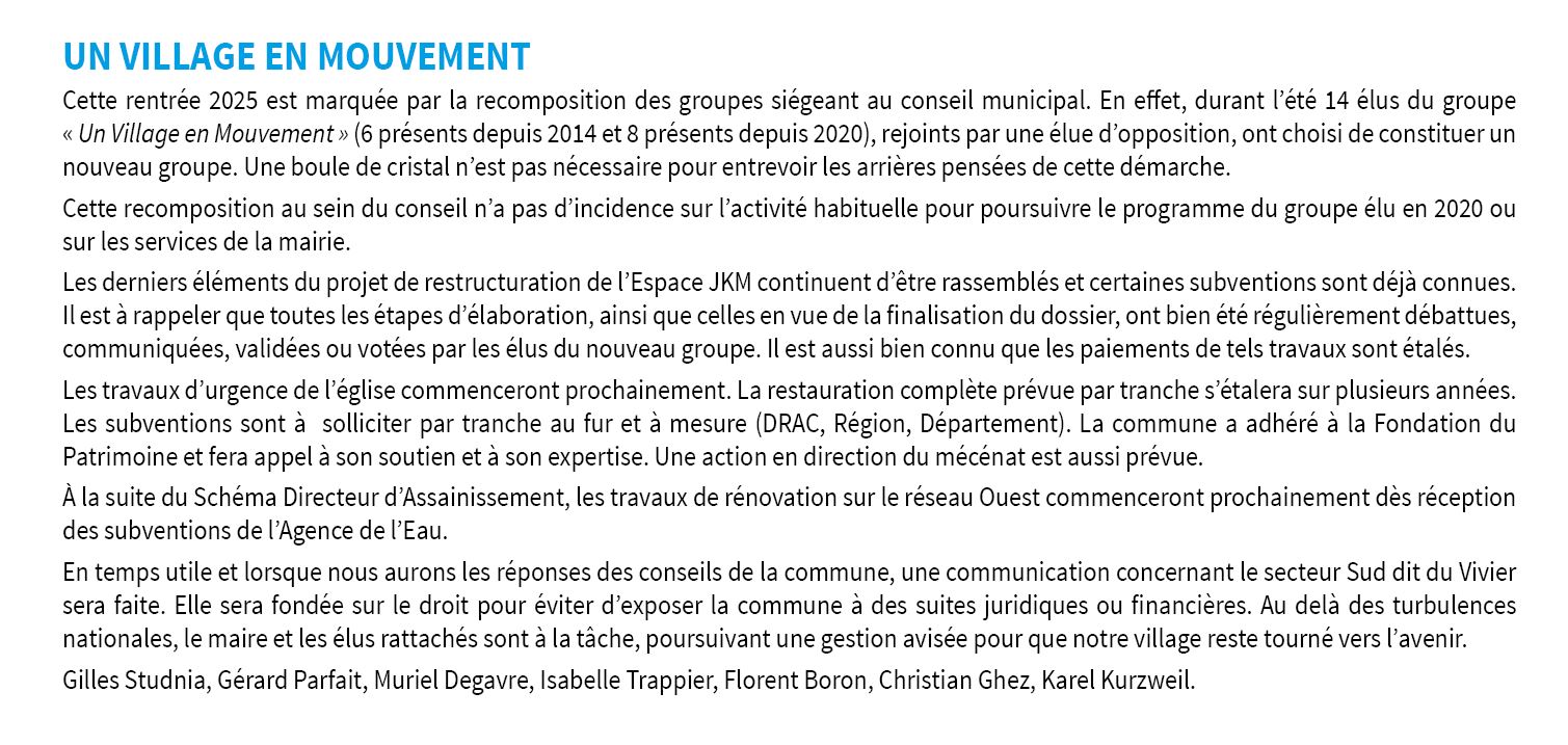 Un village en Mouvement GA n° 87 - Octobre 2025